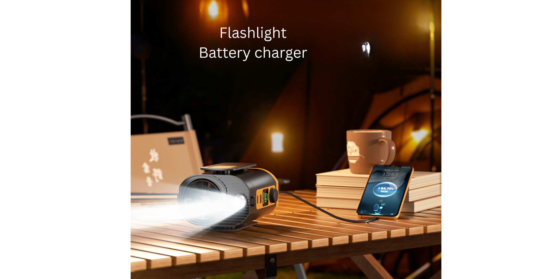 Het wordt ook geleverd met een geïntegreerde zaklamp en een USB-C-kabel om zichzelf of uw telefoon op te laden!